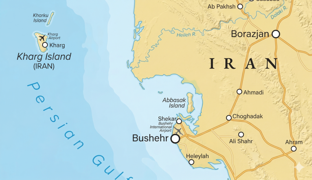 - Nearly 90% of Iran’s total oil exports originate from Kharg Island.